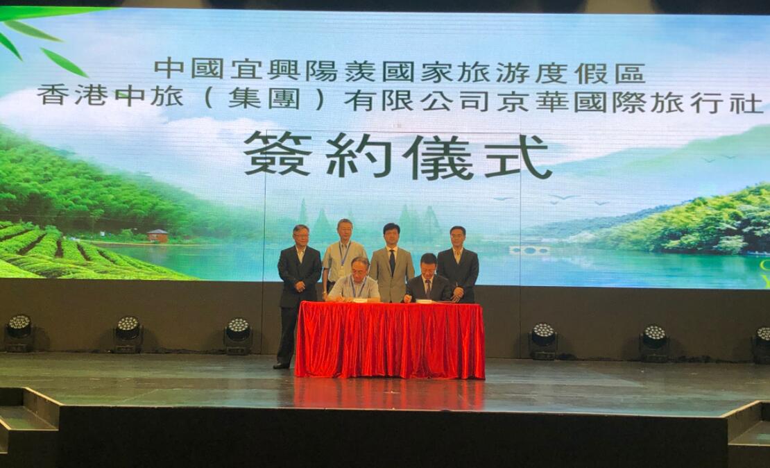 推介會現場,中國宜興陽羡國家旅游度假區與香港中旅(集團)有限公司京華國際旅行社舉行簽約儀式
