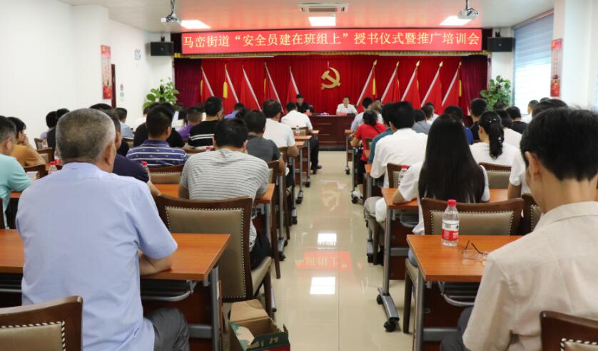 【香港商報網訊】5月23日上午,廣東省深圳市坪山區馬巒街道安監辦組織召開了「安全員建在班組上」授書儀式暨推廣培訓會,街道黨工委副書記、辦事處主任王超,街道黨工委副書記、組織部部長吳玉雷,街道安監辦負責人及馬巒轄區工貿企業負責人共80餘人參加了會議。