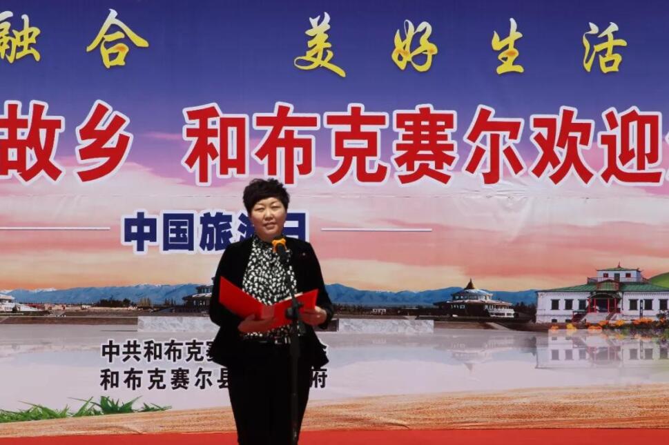 和布克賽爾縣委常委、宣傳部部長仙巴依爾在歡迎儀式上致辭
