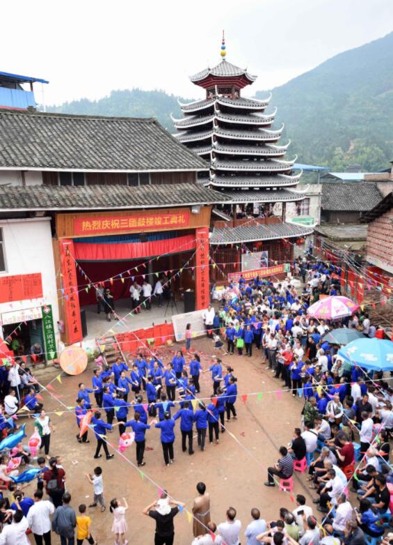鼓樓是侗族村寨的重要建築標誌,是侗寨舉行集會、議事、文化娛樂的活動場所,被侗家人譽為「寨膽」「寨魂」。(徐玉瑩 龔普康)