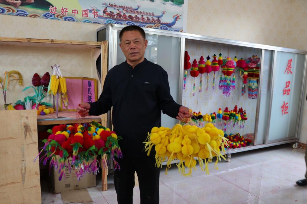 長春非遺物質傳承人蔡蘭亭展示紙葫蘆製作工藝