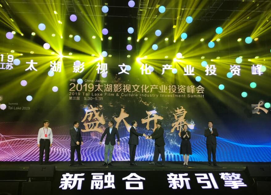 江蘇省委常委、無錫市委書記李小敏、中宣部電影頻道主任曹寅、導演徐崢、中國電影家協會副主席、博納影業董事長於冬等為2019中國·江蘇太湖影視文化產業投資峰會開幕