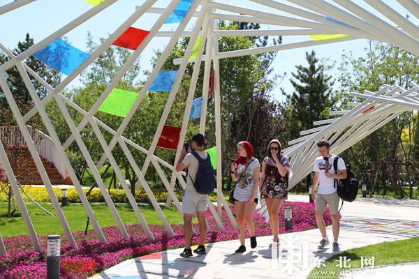 俄羅斯遊客在黑龍江室外展區遊覽拍照