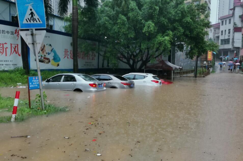 鶴山沙坪城區到處水浸。圖片拍攝:江門日報特約攝影師歐蕊榮、梁偉勝