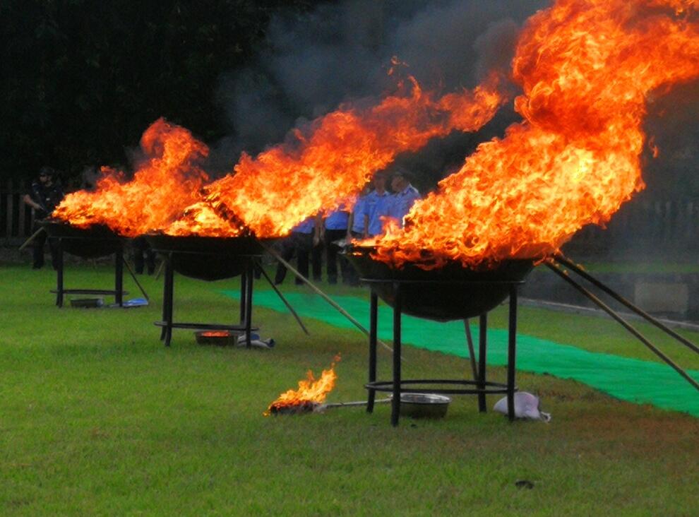 1839年6月3日,林則徐下令在虎門海灘當眾銷毀鴉片,至6月25日結束,共歷時23天,銷毀鴉片19187箱和2119袋,總重量2376254斤。