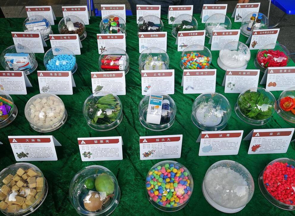 禁毒人員展示各類型毒品並勸導市民遠離毒品