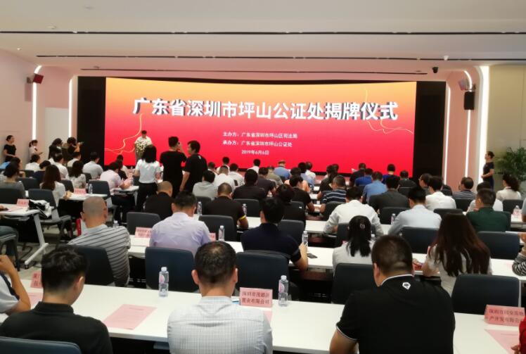 【香港商報網訊】6月6日上午,由深圳市坪山區司法局主辦、坪山公證處承辦的「廣東省深圳市坪山公證處揭牌儀式」在坪山創新廣場舉行。深圳市司法局副局長任繼光,坪山區委副書記、政法委書記李映中等領導出席儀式,並為坪山公證處揭牌。