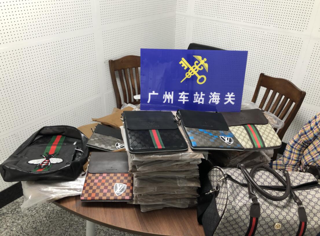 6月1日下午,1名中國香港籍男性旅客擬乘坐Z815次粵港直通車從廣州天河鐵路口岸出境前往香港,選擇無申報通道通關。海關關員檢查時發現,此名旅客隨身攜帶的行李內有標有「LV」商標的手袋32件和「Gucci」商標的手袋55件,且手袋包裝簡陋、沒有吊牌,可能涉嫌侵犯知識產權。在回答海關關員問詢時,旅客神情緊張、言辭閃爍,無法提供相關知識產權證明,最終承認該批手袋系仿製品。