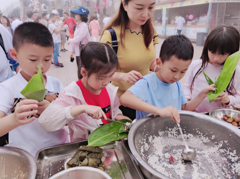 小朋友在黃山體驗包粽子 林雨龍/攝