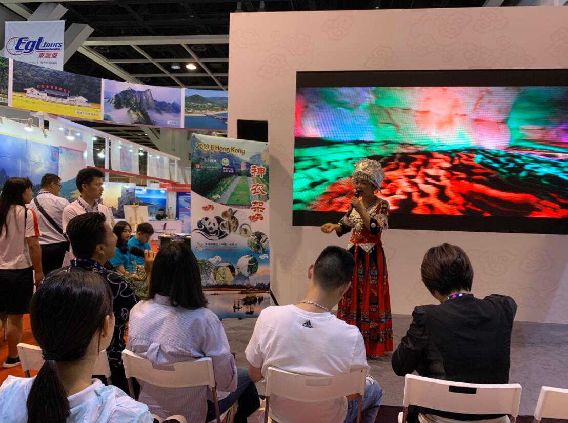 此次香港國際旅展是湖北省文旅機構改革後首次參加的專業國際旅遊展會,為推進文旅深度融合發展,湖北省遴選了富含文化內涵的景點和旅遊線路赴港參展。推介會現場,身著華麗傳統民族服飾的土家“么妹兒”一亮相就吸引了大量人氣,觀眾們積極參加互動,爭先恐後地和演員對唱湖北民歌《龍船調》《六口茶》;十堰和神農架兩地聯合推出的“鄂西文化養生體驗之旅”精品線路受到了熱烈追捧,前來咨詢的旅行商和觀眾觀眾絡繹不絕。