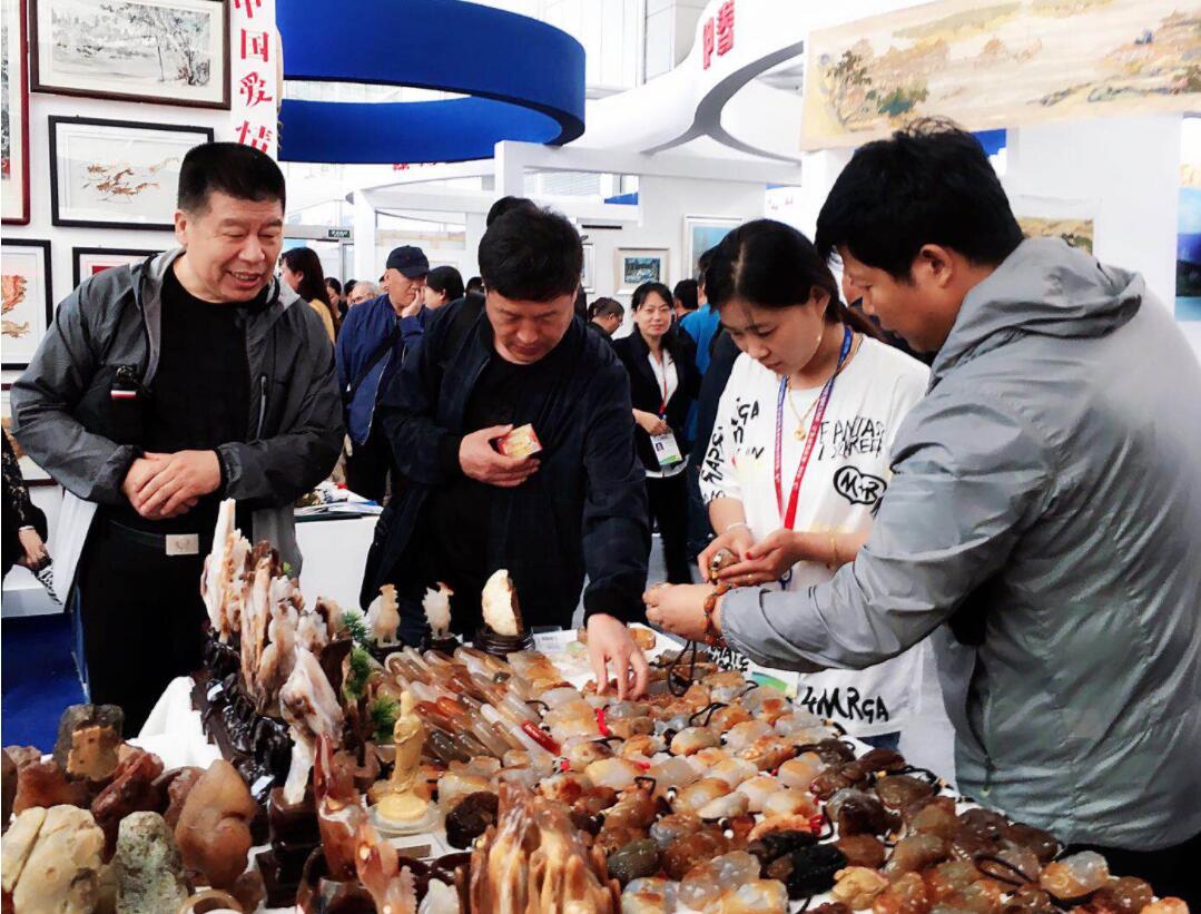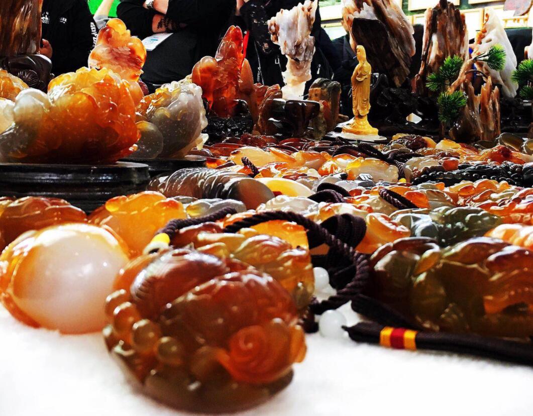 在大興安嶺文化展區,擺放呼瑪這8家瑪瑙產品的櫃檯,幾乎佔據了大半邊的位置。櫃檯上擺放的晶瑩剔透的瑪瑙手鐲、手鏈、項鏈,以及構思奇妙、工藝精湛的瑪瑙掛件、擺件和把玩用品等,真是琳琅滿目,引得八方客商和參觀者在櫃檯前流連忘返,或駐足觀看,或討價購買,對心儀的瑪瑙產品愛不釋手,嘖嘖稱讚。