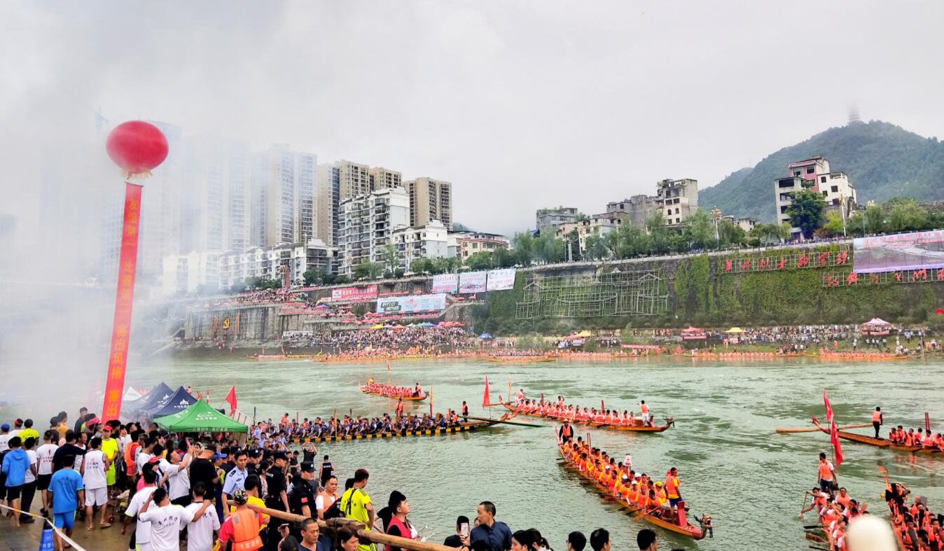 活動現場,綵球吐紅壯山色,百舸爭流繪將魂,隨着發令槍一響,58支龍舟分為A組(河東組)和B組(河西組)比賽,各支參賽龍舟在江面上相互角逐,一排排整齊的龍舟猶如利箭脫弦在逆流中奮勇爭先。烏江兩岸人山人海,鑼鼓喧天,近萬名觀眾的加油聲、吶喊聲交相呼應,形成生氣勃勃、扣人心弦的場面,讓所有觀眾朋友們目睹了一場水上「力量的較量」現場版。