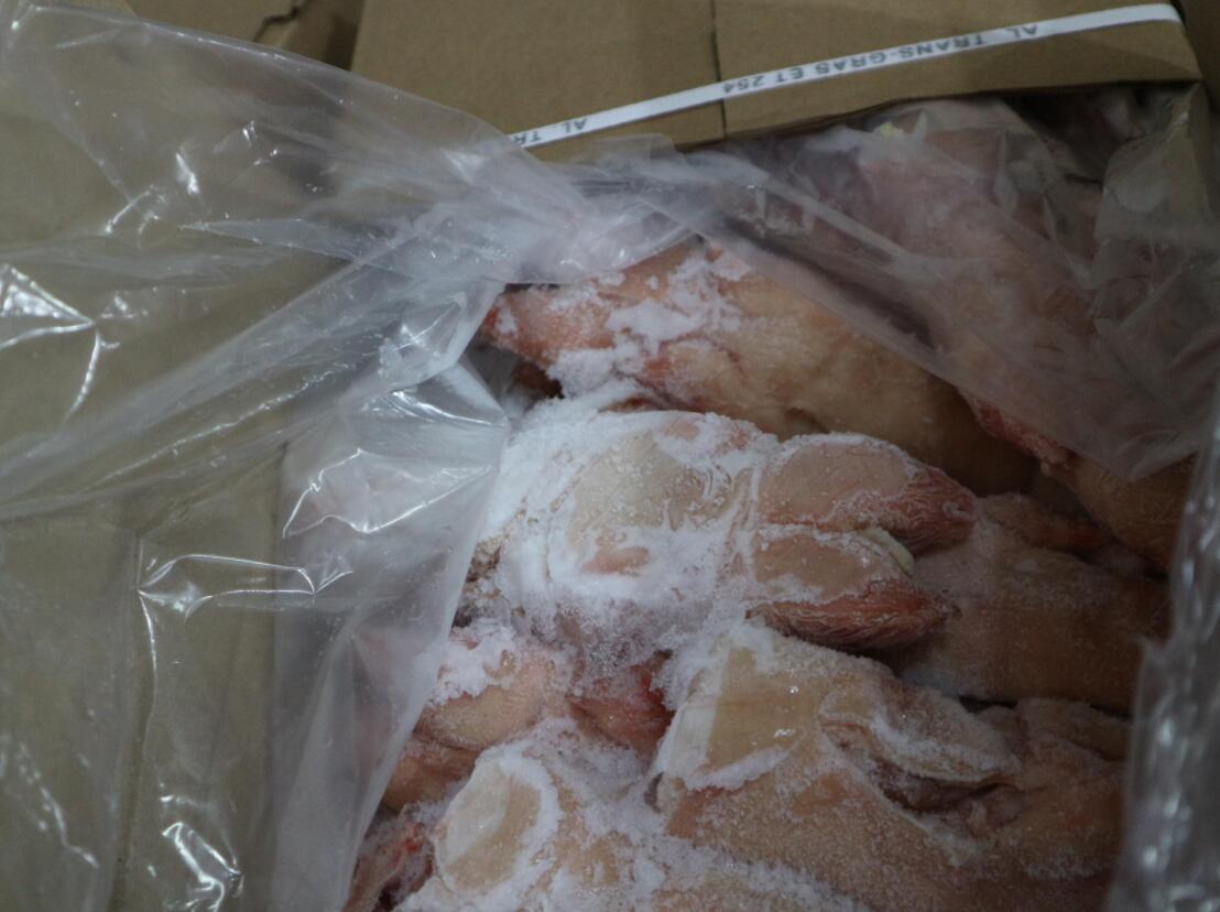 南沙口岸截獲貨證不符的加拿大進口凍豬後腳