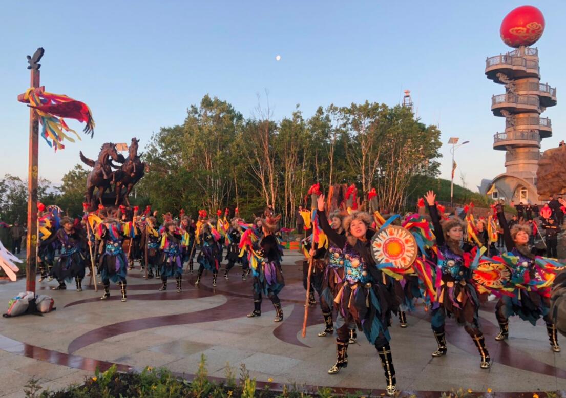 21日凌晨一點記者跟隨隊伍乘車前往神頂峰觀看日出,有許多攝影愛好者早早就在此等候,尋找最佳攝影位置。雨後初晴,站在神頂峰上看着變幻無窮的林海中的雲海,也為日出增添了奇幻的色彩,可謂人間仙境。三點十分左右看着灰濛的天空一點點變亮,雲彩從橘色漸漸變成紅色,寒風刺骨中大家激動的心情在太陽冒頭的時候瞬間燃起,與周圍的景色構成了一幅天然美麗的畫卷。太陽升起後舉行了祭祀活動。隨後又一同乘車遊覽了珍寶島、東方紅濕地、石海、南岔湖公園等天然景觀。