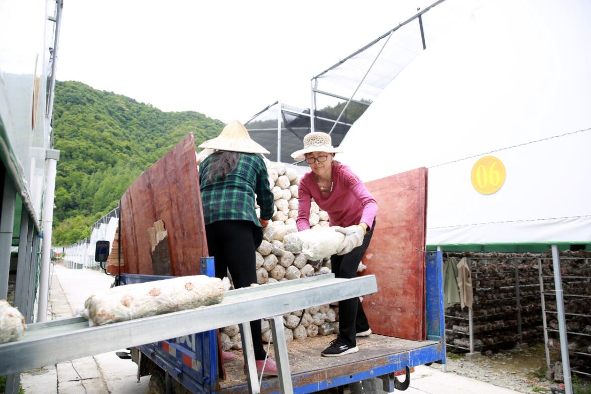 南漳縣利民食用菌種植專業合作社的香菇大棚,是長坪鎮規模較大的食用菌生產基地。時下正值菌棒新老交替的時間,村民們正在將舊的菌棒回收後用來製作有機肥,新的菌棒擺在架子上,等到今年10月份左右,這些菌棒上將會長出一個個香菇,而這些香菇也是貧困群眾眼中的致富傘。