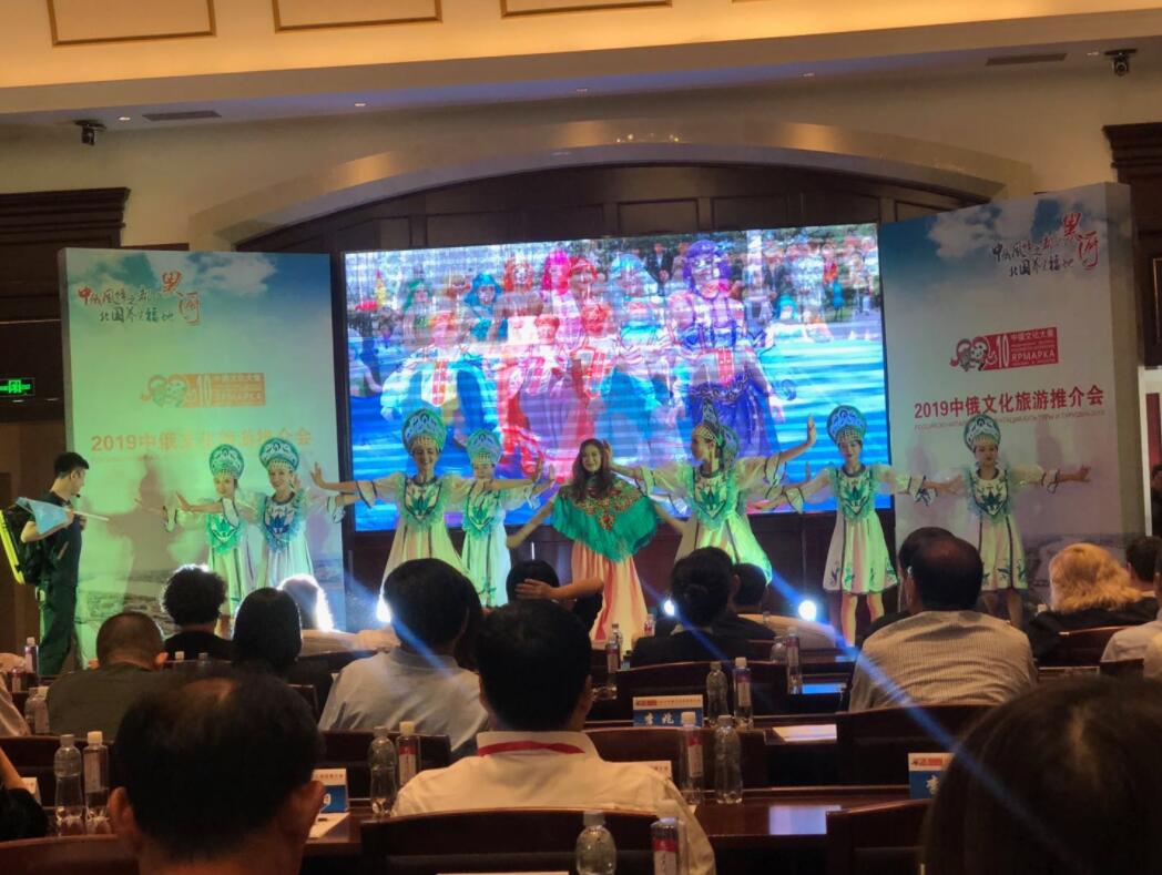 大屏幕里黑河景色四季流轉,主舞台上方追光燈交織色彩變換,聚光燈下舞者伴隨音樂節奏盡情搖曳,一幕由黑河市人民藝術劇院演員表演的舞台劇《來了,黑河!》將2019中俄文化旅遊推介會引向高潮,獨出心裁的創意形式,將黑河特色旅遊產品展示的淋漓盡致,收穫陣陣掌聲。