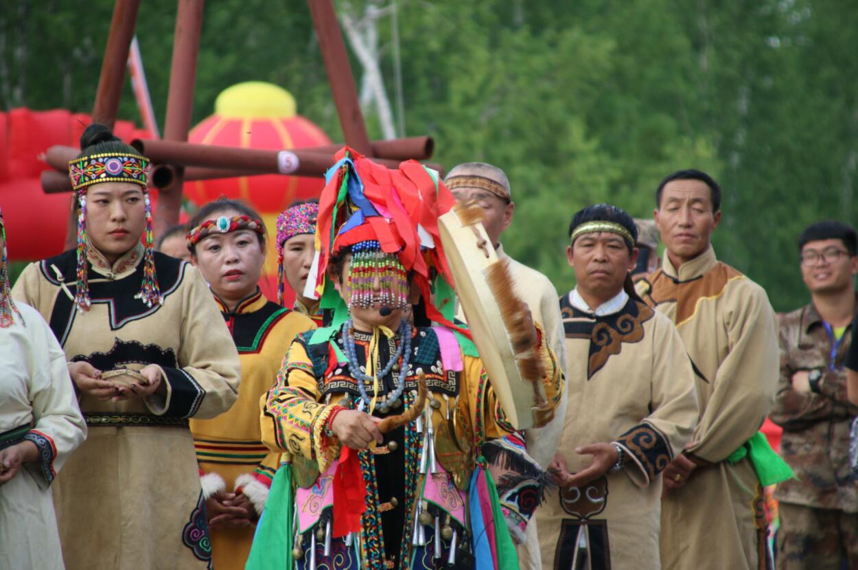 6月23日16時,民俗文化活動正式開始,重頭戲當屬薩滿祭祀活動,古老的鄂倫春祭祀活動神秘而莊嚴。「薩滿」敲擊着法鼓,口中念着鄂倫春語,在鄂倫春族同胞擺放的祭品前,帶領着同胞面向薩吉滿盛山叩拜,祈求幸福吉祥。簡短的開幕式結束後,伴隨着威風鑼鼓的鼓點,文藝演出正式開始,歌曲《情系依沙溪河》《我們的鄂倫春》《鄂倫春我依戀的家園》、舞蹈《斗熊》《薩滿鼓》等等,一個個帶有濃郁民族特色的文藝節目把人們帶入那神秘的世界。最受遊客們歡迎的還是鄂倫春民族美食,只見六口大鍋被遊客們團團圍住,鄂倫春族群眾精心燉制的羊肉、江魚等美食散發著陣陣香味,遊客們爭先恐後地前來品嘗鄂倫春民族美食。