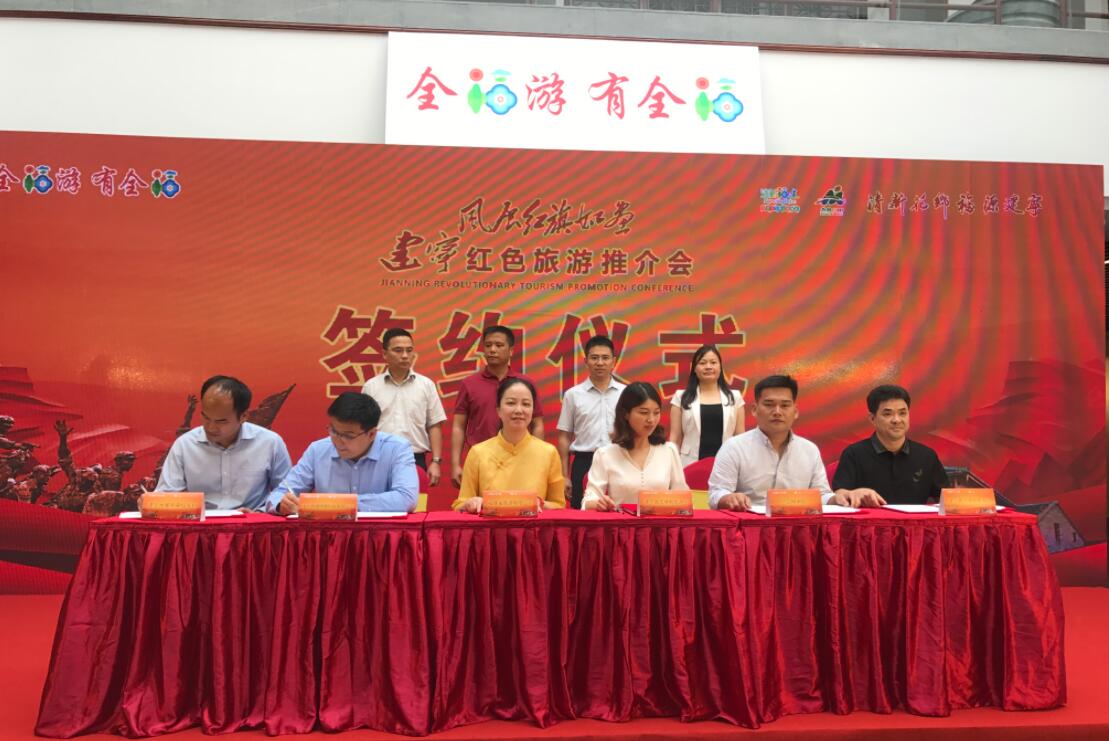 會上,建寧縣文體和旅遊局分別與福建省旅遊有限公司、三明學院簽訂“不忘初心 牢記使命”紅色主題教育線路合作協議、紅色文創產品製作協議,建寧縣客坊鄉水尾村與福州絡捷網路科技有限公司簽訂紅色文化旅遊村企合作框架協議。