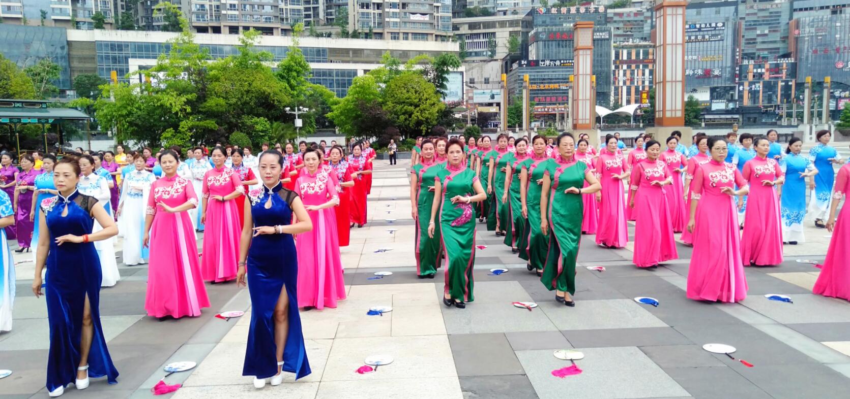 當日下午,隨着中天未來方舟半島廣場上響起《水韻江南》和《江南情》的音樂聲,來自各個旗袍方隊的芊芊淑女,婀娜旗袍着身,曼妙多姿,笑顏如花綻翩翩起舞……