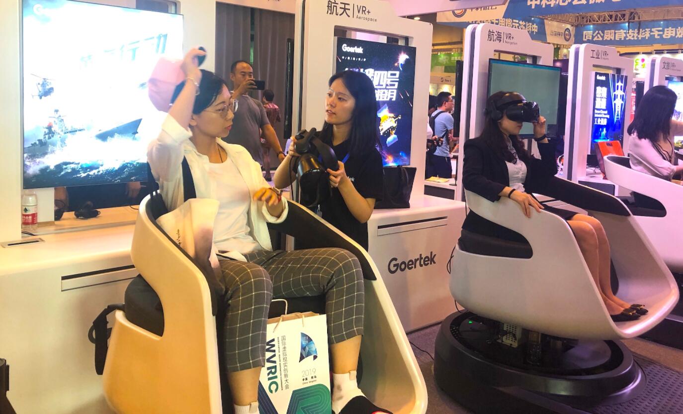 隨着VR/AR技術不斷發展和成熟,其應用與行業的結合越發緊密,VR/AR的實用性得到更好地提升。據工作人員介紹稱,歌爾具備成熟的VR光學元件、AR光機系統和智能硬件設計製造能力,高端VR頭顯全球出貨量位居前列。並整合國內各類行業優質資源,致力於探索“內容+硬件+技術+平台”融合發展。本次展會上,歌爾展示了涵蓋航空航天航海、科普教育、文化旅遊、工業等領域的行業創新應用。《嫦娥四號登月體驗》通過創新的VR沉浸式系統+定製的VR轉椅,可以讓人身臨其境體驗嫦娥四號探月全過程。教育類VR體驗內容《古詩詞》則通過情景化還原,使體驗者置身於古詩所描繪的環境,沉浸式體驗詩詞的創作意境,加深對古詩詞的理解。