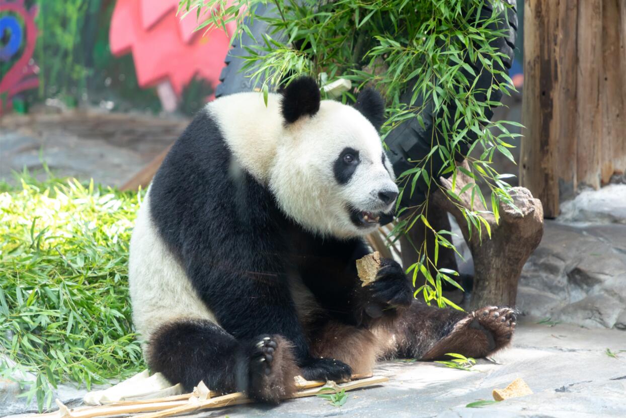 而讓飼養員們傷透腦筋的是,「萌萌」從四川回來後胃口180度大轉變,跟前四位相比「萌萌」最為挑食。剛回來廣州長隆只採食了一些竹葉,之前喜歡吃的黃金竹竿也不愛吃;來到新地方後到處嗅聞,標記號,食量才漸漸恢復,但還是比較挑竹子吃,飼養員只能每天一大早砍采十多種新鮮竹子給她選擇,直到她挑選到最喜歡的「孕期美食」。