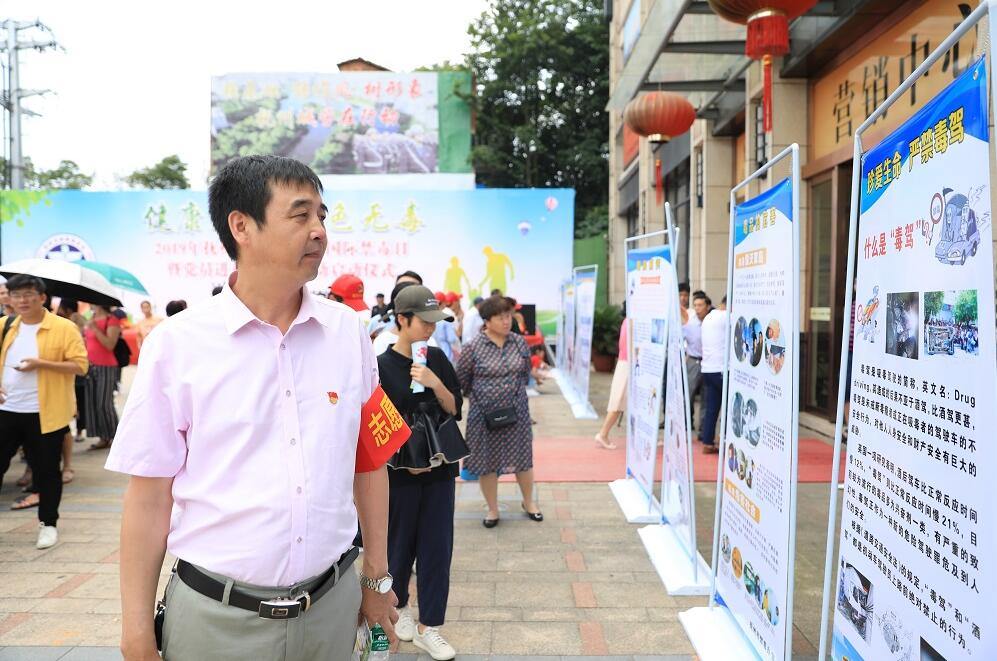 現場的禁毒展板吸引很多人駐足了解禁毒知識 圖/李勇