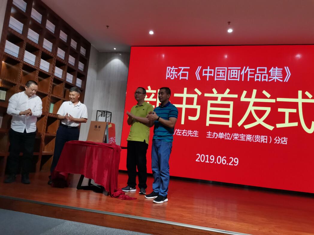 榮寶齋(貴陽)文化有限公司總經理劉鵬先生、嘉賓代表潘聞丞、龔月慶與陳石先生共同揭禮啟幕