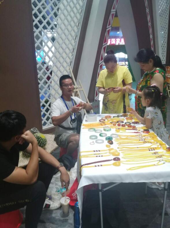逛完工藝品區,彭女士來到了坦桑尼亞琥珀的展台前,彭女士坐在展台前拿起一串串蜜蠟仔細的品鑒,並與經銷商商談價格……琥珀經銷商龔先生告訴記者,他此次是隨同雲南省政府團一起來參展的,在此前的中非經貿博覽會上,三天的交易額達到了300萬,因此他看到了湖南人強大的購買力。所以萌生了在「非洲館」長駐的打算,通過這幾天和長沙政府方面的接洽,感受到了長沙的營商環境很好,政府對接部門的人員都很熱情,辦事效率高,能盡量滿足經銷商提出的要求,目前入駐展館各方面的對接工作正在有序的進行,以後將在「非洲館」長期經營「非洲琥珀」。