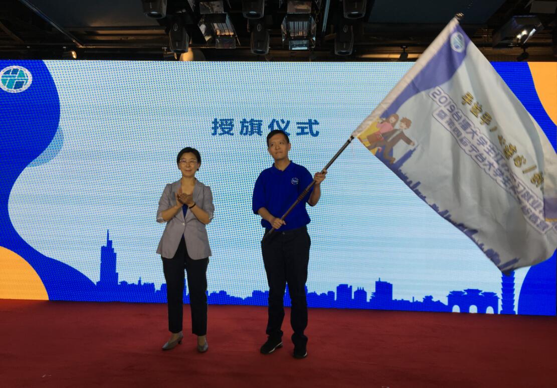 江蘇省台辦主任練月琴向實習生代表授營旗