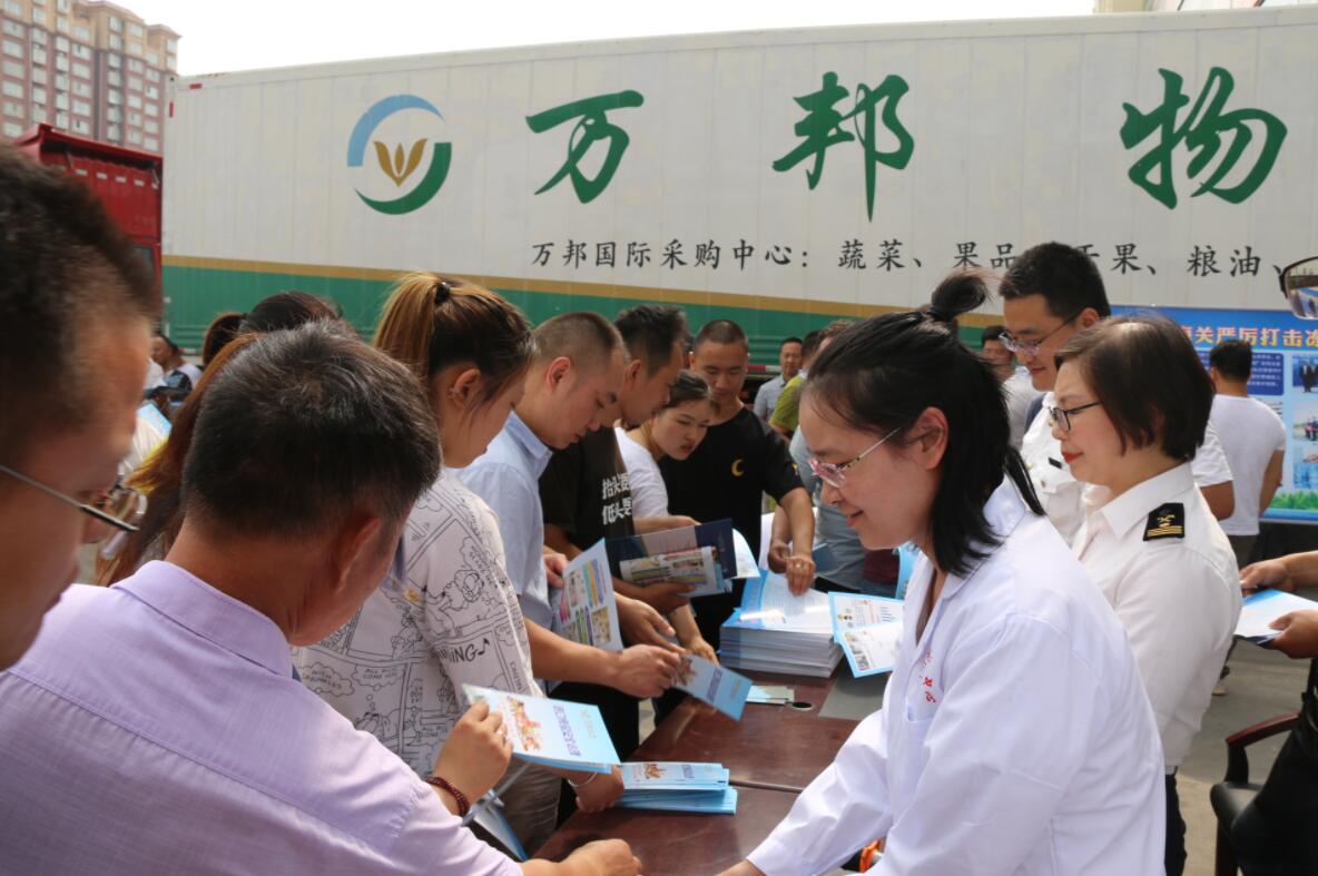 鄭州海關還走進在全國很有影響力的凍品集散地「河南萬邦國際農產品交易市場」,深入商戶中間,通過設置宣傳諮詢點、舉辦小講堂、講解展板案例、發放知識手冊等多種形式普及進出口食品安全知識。針對現場群眾和商戶的關切問題,現場舉辦多個「食品安全小講堂」,詳細介紹了進口食品法律法規、食品消費常識、進口食品程序和注意事項、走私凍品的危害以及違法犯罪應當承擔的法律責任,海關技術專家還利用實驗室儀器現場演示了食品快速檢測和鑒定方法,受到群眾和商戶歡迎。活動期間,食品經營商戶代表還公開宣讀「食品安全承諾書」,承諾嚴格遵守食品安全法律法規,守法經營,為人民群眾供應安全優質的食品農產品。