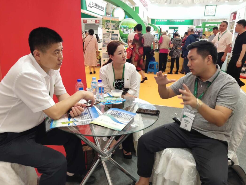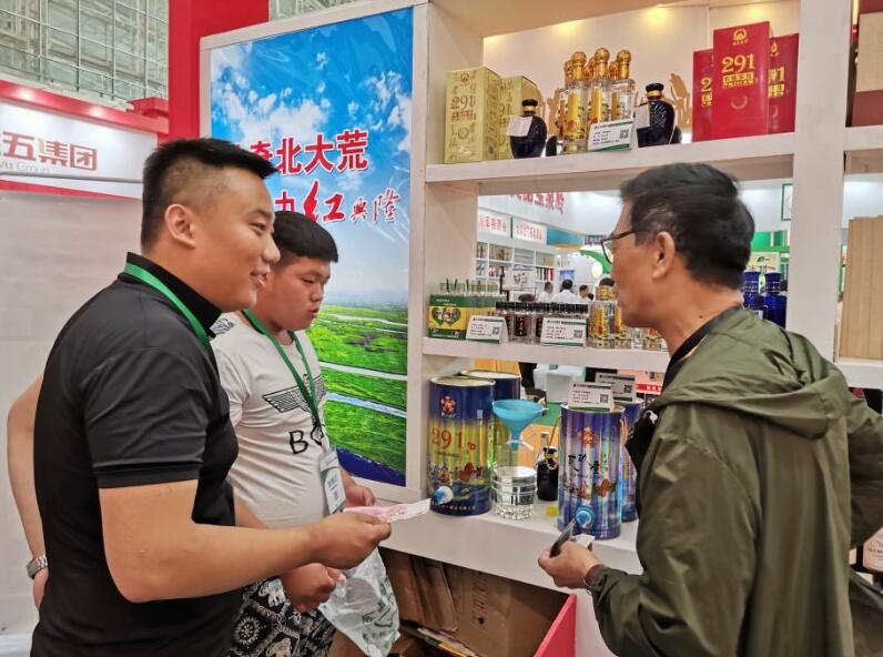 【香港商報網訊】7月5日,北大荒·中國農墾首屆食材交易會暨北大荒文化旅遊節在黑龍江哈爾濱國際會展中心開幕。北大荒二九一農場有限公司商務科積極組織轄區各企業參加此次展會,在哈爾濱國際體育會展中心C館,二九一農場有限公司「御食小鎮」有機米、「別撐着」鴨稻弱鹼有機米、「北大荒」五穀方便粥、北大荒知青酒等產品一一亮相,備受廣大消費者的關注與青睞。來自廣西的客商來到紅興隆管理局二九一農場有限公司產品展示區與商務主管領導進行業務洽談並達成合作意向。