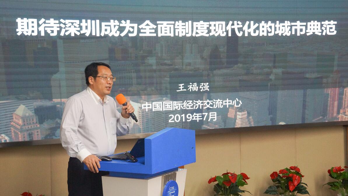 【香港商報網訊】記者 蘇偉 報導:7月7日下午,由深圳市委宣傳部和深圳市社科聯主辦、馬洪基金會承辦的第十七屆深圳社會科學普及周講座特邀中國國際經濟交流中心產業規劃部部長、粵港澳大灣區戰略研究課題組組長王福強以「期待深圳成為全面制度現代化的城市典範」為題,進行演講。深圳市社科院副院長王為理、馬洪基金會創會理事長李羅力、智庫百人會副總召集人張克科、王富海、於長江、饒錦興及社會各界關注粵港澳大灣區規劃發展的來賓和媒體朋友近百人聆聽了講座。本次活動由中國(深圳)綜合開發研究院資深研究員李津逵擔任主持。