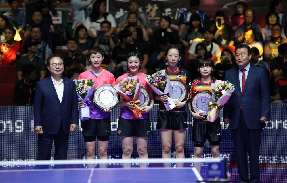 【香港商報網訊】記者 林麗青 報導:7月7日晚,菁英航運國際乒聯巡迴賽韓國公開賽落下帷幕。中國隊選手、深大學子暨深大乒超俱樂部王牌隊員陳夢在女單決賽中以4:1戰勝國乒隊友丁寧,繼中國公開賽後再奪女單冠軍。在女雙項目中,陳夢搭檔國乒隊友王曼昱成功實現登頂,如願成就本戰公開賽「雙冠王」。此次韓國公開賽中,深圳大學5位女將最終助力中國隊收穫4枚金牌。