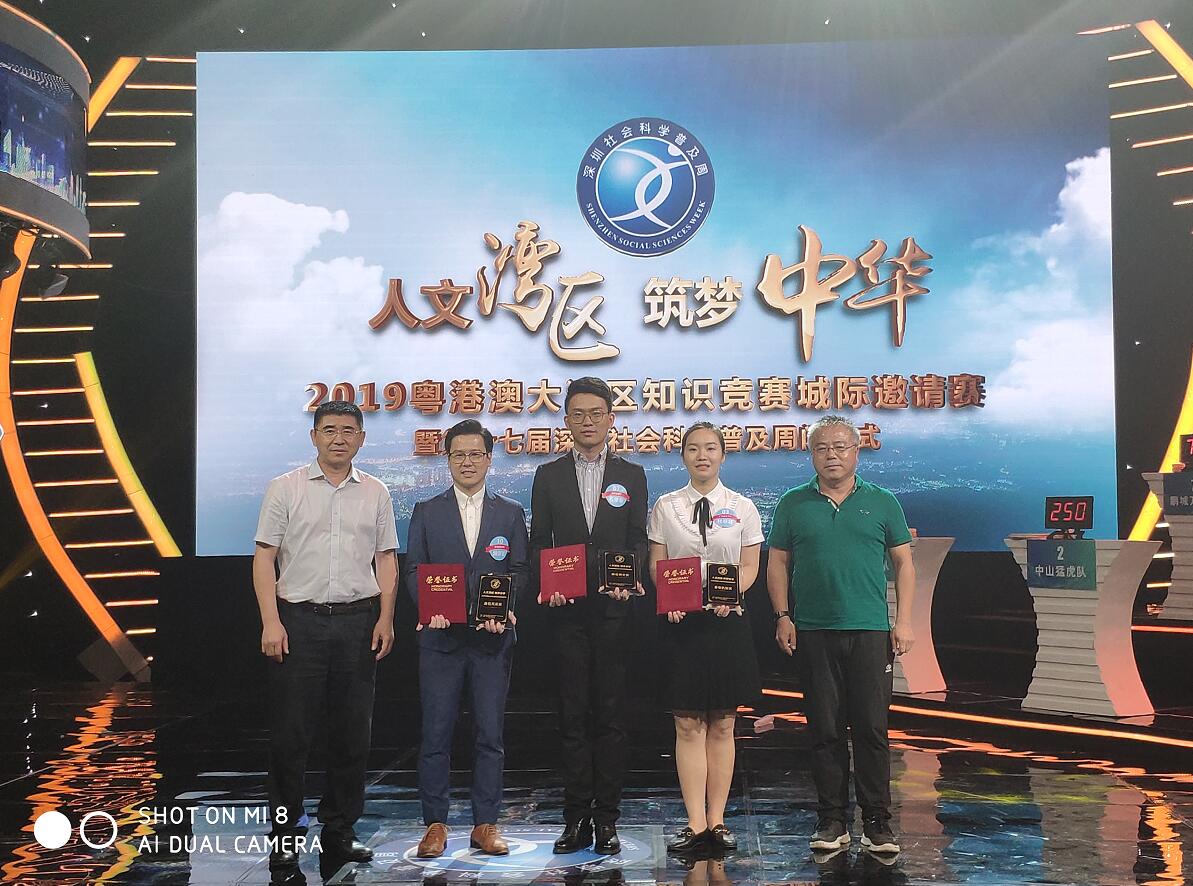 【香港商報網訊】記者 蘇偉 報導:7月8日下午,由深圳市委宣傳部、深圳市社會科學聯合會、深圳廣電集團聯合主辦的「人文灣區 築夢中華」2019粵港澳大灣區知識競賽城際邀請賽暨第十七屆深圳社會科學普及周(2019)閉幕式,在深圳廣電集團800平米演播廳隆重舉行。深圳市委宣傳部常務副部長陳金海、深圳市社科院(聯)黨組書記、院長吳定海、深圳市社科院(聯)黨組成員、副院長王為理、深圳廣播電影電視集團副總經理鄭鼎文等領導出席了當天的活動。深圳廣電集團新聞中心主持人韓松、深圳廣電集團移動電視頻道主持人明怡搭檔主持本場比賽。經過逾兩個多小時過五關斬六將的激烈比賽,來自廣州代表隊的廣州喜羊羊隊獲得冠軍,而來自深圳代表隊的鵬程萬里隊惜敗獲亞軍!,季軍由香港代表隊的香港耀東方隊獲得。