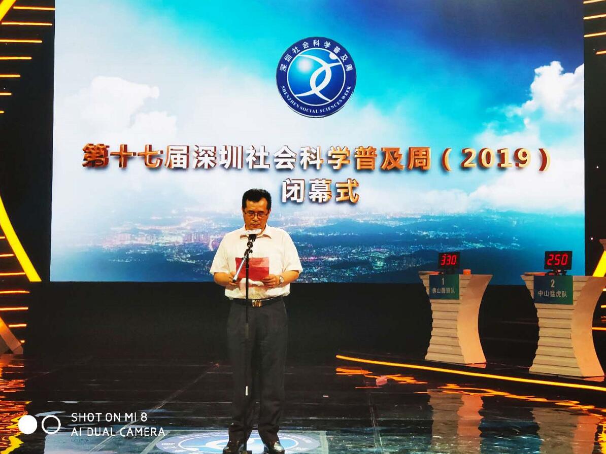 社科普及春風化雨,潤物無聲,社科普及任務艱巨、使命光榮。深圳市社科院(聯)黨組書記、市社科院院長吳定海先生,對第十七屆深圳社會科學普及周做了深刻而細緻的總結講話。隨後,深圳市委宣傳部常務副部長陳金海先生宣佈第十七屆深圳社會科學普及周閉幕。至此,「人文灣區 築夢中華」2019粵港澳大灣區知識競賽城際邀請賽暨第十七屆深圳社會科學普及周(2019)閉幕式完美落幕。