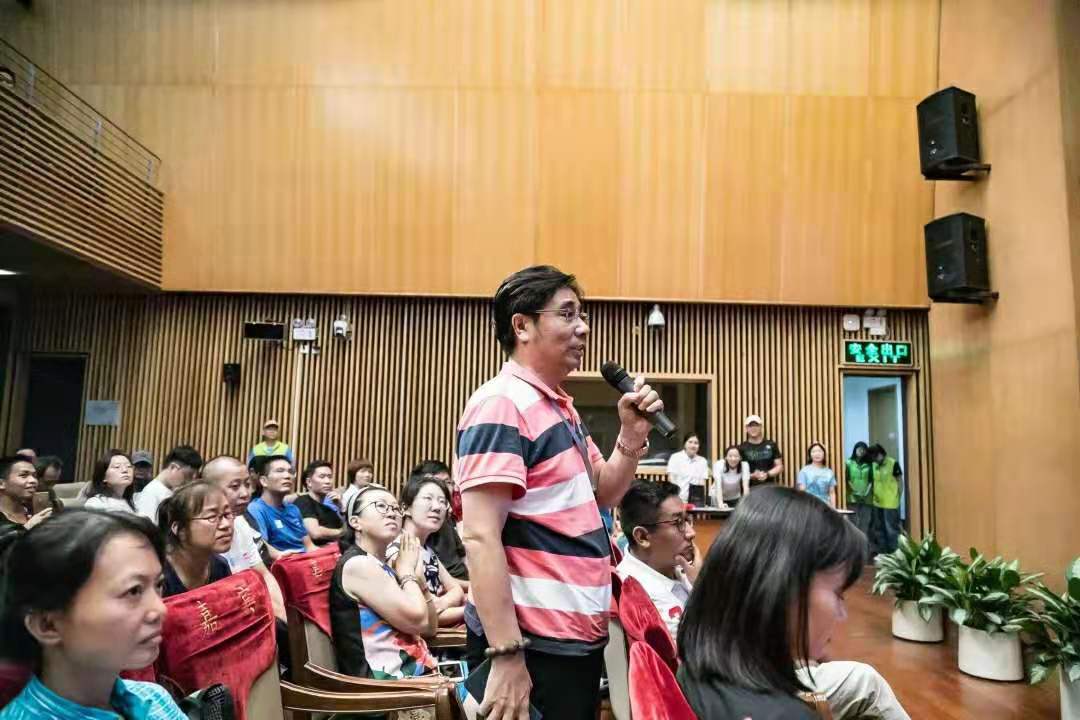 第一個山友劉永忠進行分享,他通過照片,對珠峰北坡和南坡進行對比說明。阿忠曾登頂珠峰兩次,21次攀登八千米以上雪山、登頂15次。2009年第一次登頂珠峰的旗幟寫着:祝深圳人民身體健康!第二個是山友楊濤進行分享,楊濤女士首先播放了一段震撼人心的攀登珠峰視頻,現場掌聲雷動。隨後她用親身經歷介紹了登山中的裝備準備、身體準備,以及心理準備的重要性。第三個山友曾惠文進行分享,曾惠文先生通過視頻和照片,同現場觀眾一起重溫了攀登珠峰的點滴。最後,山友李凰英進行分享,她是三個孩子的媽媽,她講述了這次攀登珠峰讓她一度想放棄,但因為他的親朋好友和所在的公司給了她堅持的勇氣,讓她成功登頂的故事。因時間原因未能到場的今年登頂珠峰的山友賈林昌發來視頻問候:四位山友分享結束後,來到了觀眾最期待的問答環節,將現場氣氛推向高潮。
