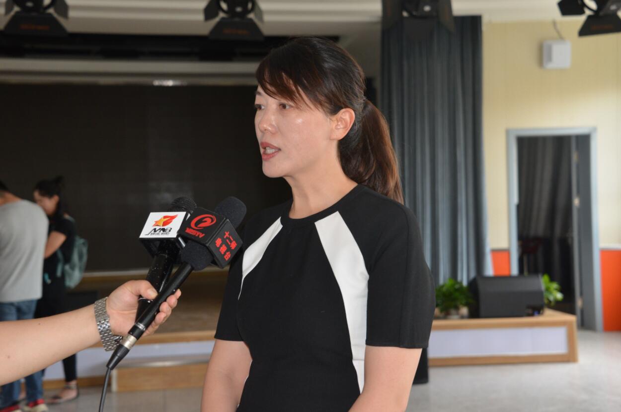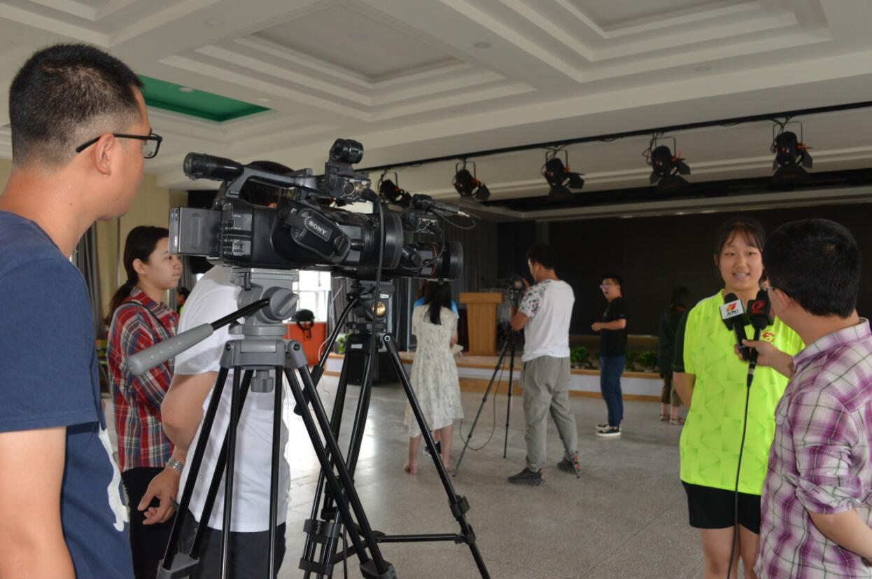 十二師中學方雪在開營儀式上接受媒體採訪