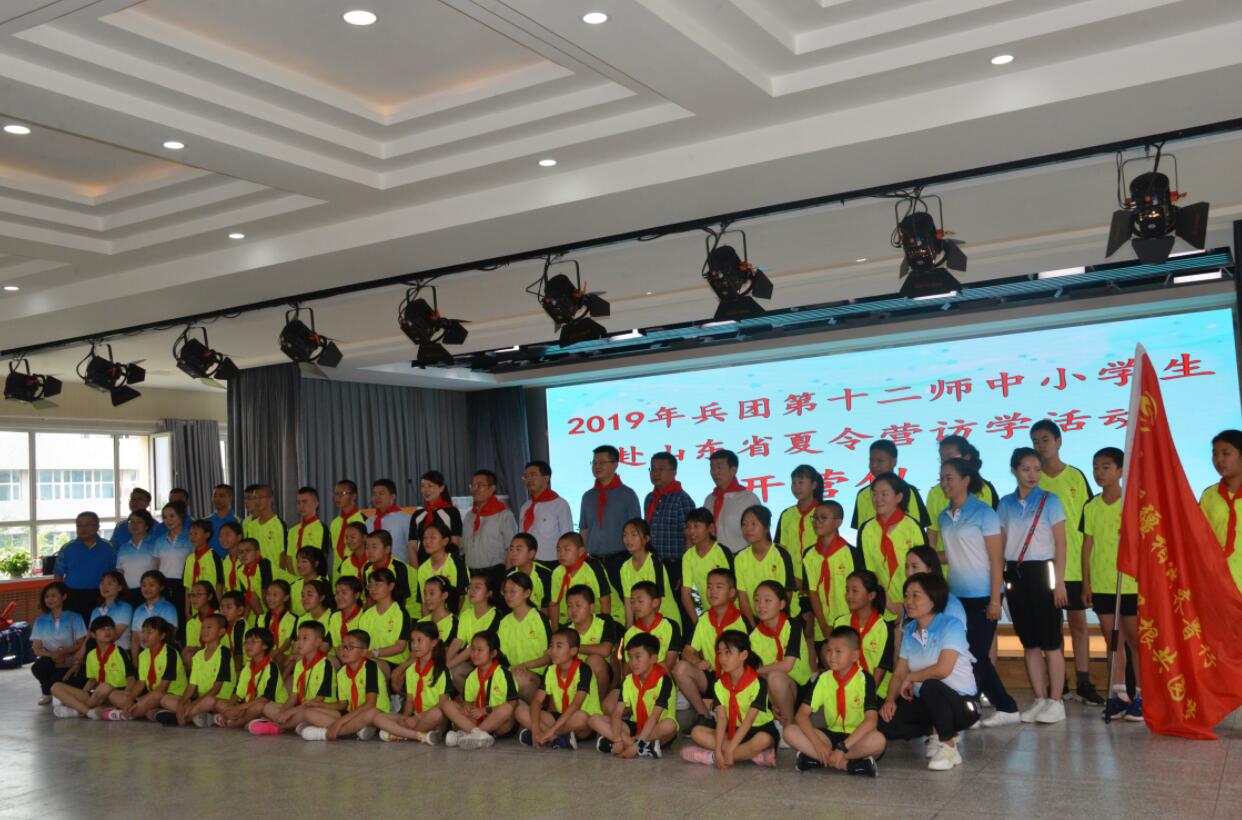 兵團團委黨組成員、副書記查永傑為夏令營授旗,十二師黨委常委、副師長呂曉雲出席開營儀式並致辭,十二師教育局局長黃瑛主持開營儀式。兵團教育局基礎教育處副處長劉國棟宣佈2019年中小學生赴山東夏令營訪學活動正式啟動。