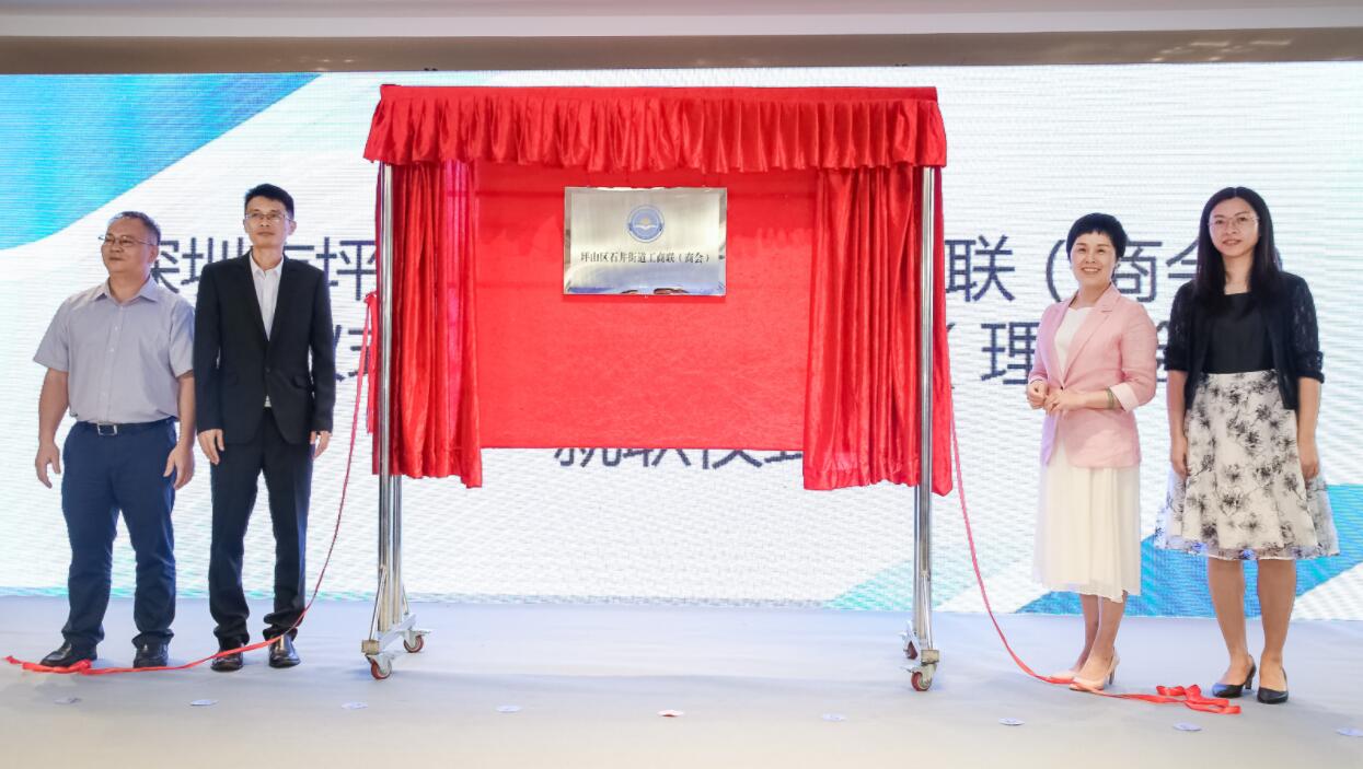 林雲果、張艷紅、馮志雲和肖妙詩共同為石井街道工商聯(商會)揭牌,並為新當選的主席(會長)、常務副主席(常務副會長)、副主席(副會長)、執委(理事)頒發任職牌。
