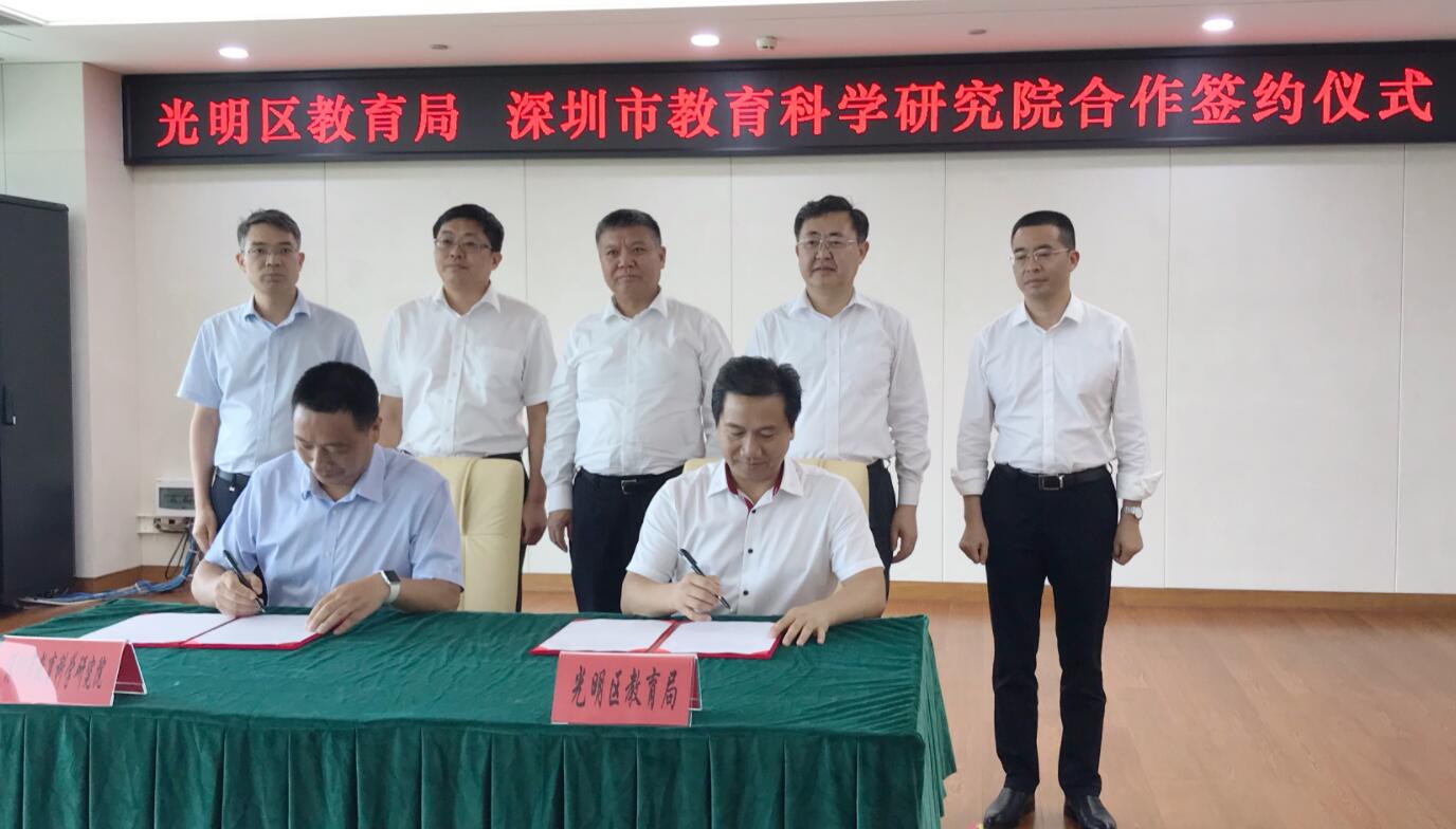 【香港商報網訊】記者 黃鳳鳴 報導:7月12日上午,深圳光明區人民政府與深圳市教育科學研究院在光明區公共服務平台舉行了合作辦學簽約儀式。深圳市政府副市長王立新,光明區委書記王宏彬,光明區委常委劉桂林,光明區政府副區長張宗平;深圳市教育局黨組成員、副局長趙立等領導出席活動。光明區教育局局長黃漢波、深圳市教育科學研究院葉文梓代表雙方簽定協議。