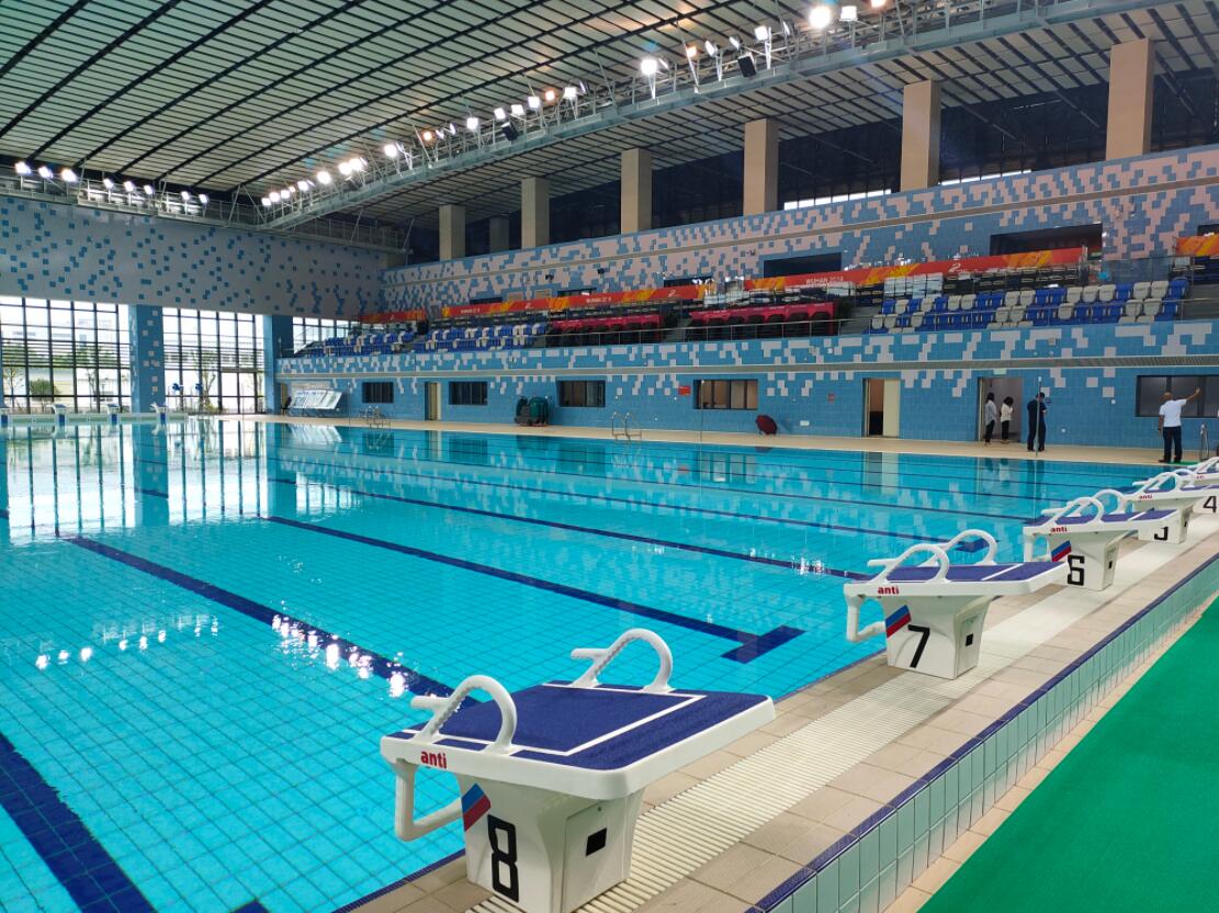 據了解,武漢商學院遊泳館目前正處於設施設備安裝階段,預計今年12月份全部完工,目前可提供遊泳項目比賽場地,此次2019武漢世界軍人運動會現代五項中的遊泳項目將在此館舉行。據武漢商學院講解人員介紹,武漢商學院遊泳館於今年建成,共花費4個多億,遊泳館幕牆系統由玻璃、鋁擋板、玻璃纖維增強混凝土構件組成,並通過將館牆設計成波浪形狀,凸顯出遊泳館“水”的特點。在遊泳館內部設有10條泳道的泳池以及觀眾席500個,並在比賽池上空采用由香港引進的水利產品——天平板空間吸聲體,保證混響時間小於2.5秒±15%,避免噪聲幹擾比賽。