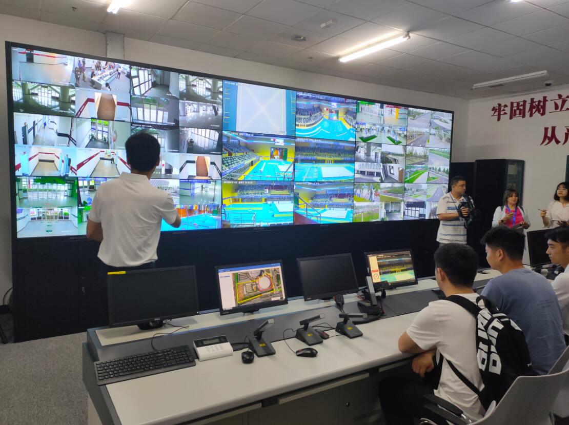 為使場館設施達到國際一流標准,主館場地板均采用具有良好承載能力與減震能力的北美楓木鋪設,有效保護運動員的腳踝關節。經國際籃協測定,湖北省奧林匹克體育中心體育館比賽地面鋪設已達到NBA標准,同時在場館燈光設施方面同樣具有滿足國際賽事需要的標准。在賽事安保方面,體育館內外共安裝高清攝像頭148個,對體育館內外部實施“全覆蓋、無盲區、超高清”的實時監控。據了解,安裝在主場館六處制高點的全景攝像頭能全方面捕捉全場任意角落的清晰畫面,通過六個全景攝像頭拍攝的高清影像不僅能為比賽裁定提供便利,還能將通過網實時傳遞至公安部門人臉檔案系統進行對比,從而保障軍運會安全、順利地舉辦。除此之外,體育館外部牆體上還安裝了電子圍欄防入侵系統,任何違規跨越行為都將引發系統報警,並在顯示儀器上精確顯示入侵位置。(李映華 張迪)