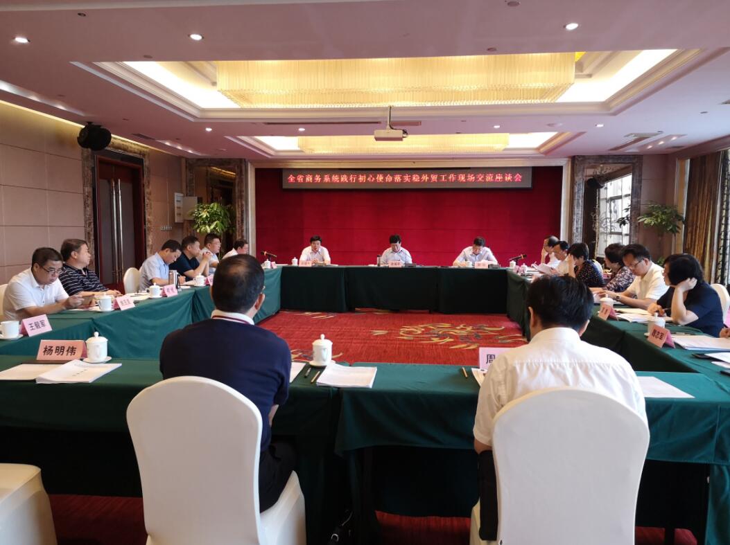 為深入貫徹落實中央「穩外貿」決策部署,確保湖南省對外貿易重點工作落到實處,按照湖南省商務廳黨組關於開展「不忘初心、牢記使命」主題教育實施方案的要求,會議聚焦湖南省對外貿易2019年度重點工作和縣市區2019年外貿「112」工作目標,圍繞外貿六大舉措,即破零倍增、外貿服務、外貿融資、萬企闖國際、外貿新業態、四個百億項目,總結上半年穩外貿工作情況,分析當前外貿工作面臨的困難和挑戰,部署安排下階段工作舉措。