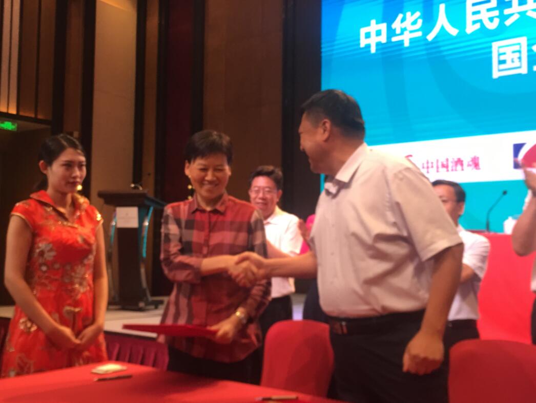 「二青會」常務副秘書長、山西省政府副秘書長丁紀崗向贊助企業頒發證書