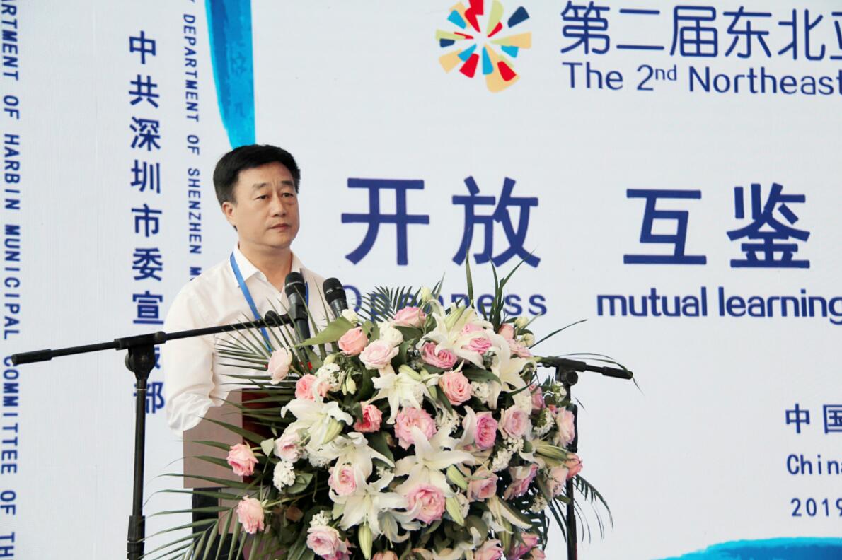 哈爾濱市委常委、副市長張萬平出席開幕式並致辭,他表示,南北聯動、文化引領。經濟發展、文化先行。兩年多來,哈深兩地宣傳文化部門堅決落實國家戰略,共同謀劃生成了一系列合作項目,取得了豐碩的合作成果。特別是兩地宣傳文化部門着眼推動東北亞地區之間經濟和文化合作而舉辦的東北亞文化藝術博覽會,受到了各方廣泛關注,得到東北亞國家的積极參与,成為展示哈爾濱和深圳城市形象、促進東北亞區域文化交流合作的重要平台。