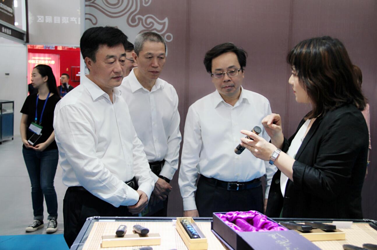 當日上午,記者一進國際會展中心的大門,就遠遠的看到一片藍色的「海洋」,走近一看藍色的地毯鋪滿整個會場直至A館大門前。門前立着慶祝新中國成立70周年的紅色展台,被藍色地毯映襯的格外醒目,本次博覽會也是緊緊圍繞慶祝新中國成立70周年這條主線,進一步彰顯文化自信和使命擔當。走到A館門前,一段悠揚的旋律傳入耳中,館內播放的音樂與主題情景交融,使人置身於文化的海洋中。