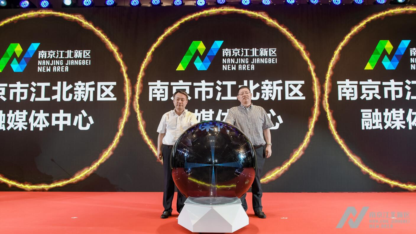 南京市委常委、宣傳部部長陳勇和南京市委常委、江北新區黨工委專職副書記羅群共同為南京市江北新區融媒體中心揭牌