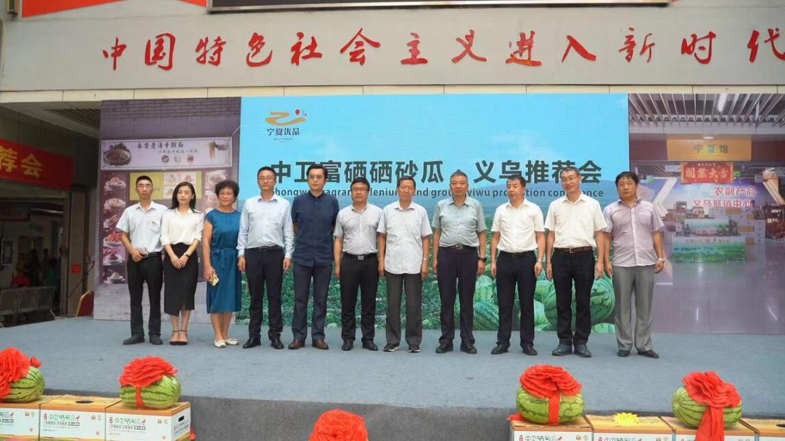 【香港商報網訊】7月18日,寧夏中衛市在浙江義烏舉行了「2019寧夏·中衛富硒硒砂瓜暨寧夏優品浙江展銷發佈會」,遠道而來的寧夏回族自治區中衛市領導帶著中衛特色硒砂瓜,向浙江人民及全球消費者推銷寧夏中衛市的名特優新健康農副食品。