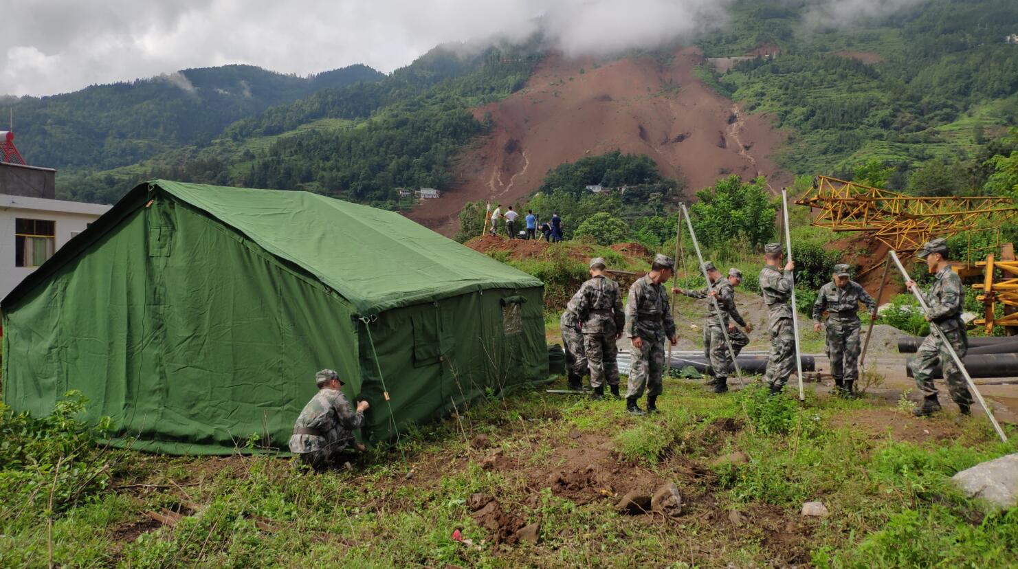 一方有難,八方支援。近千人的救援力量在現場連續作戰。目前,現場救援已投入大型挖掘機及裝載機20餘台、大型運輸車輛10餘台、各類搶險救援車輛100餘輛,搭建帳篷100餘頂,食品、藥品等救援物資已全部到位。
