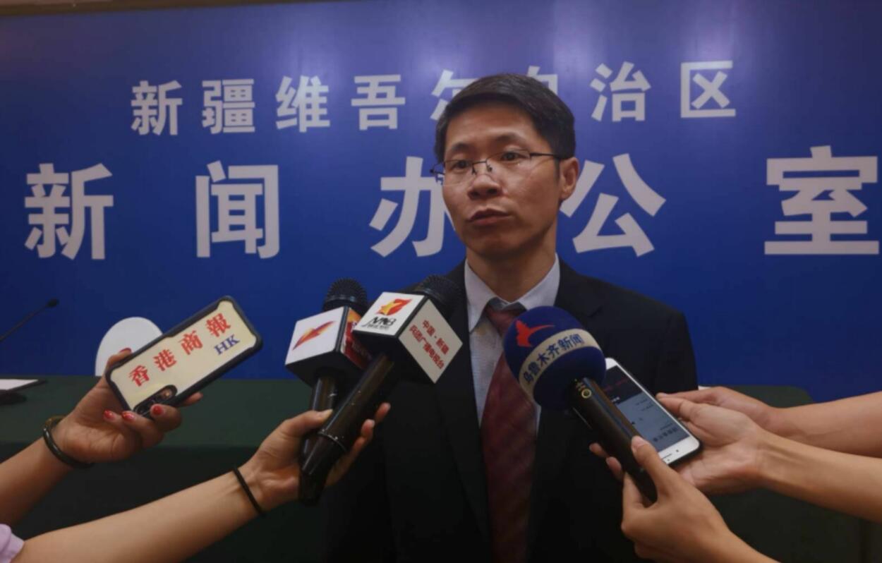 新聞發佈會後,中國人民銀行烏魯木齊中心支行黨委委員、副行長陳元富接受媒體採訪